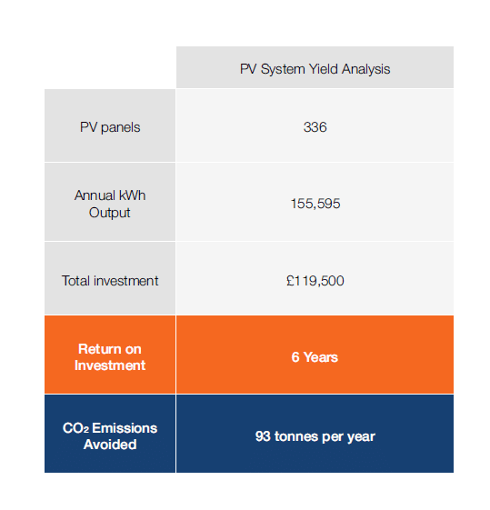 Solar PV yield analysis allows for a detailed and accurate assessment of the annual kWh output compared with the total cost of the investment of a proposed solar scheme. This provides a timeline for a return on investment (ROI) whilst also showing how much CO2 Emissions can be negated each year.