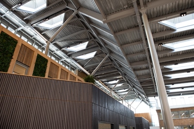 Garland UK’s R-MER LOC standing seam metal system was specified for the new atrium roof, where details of the numerous double actuated roof lights and siphonic drainage gutters were easily accommodated due to the flexibility of the system. Expertly installed by Garland approved contractors, Valent Roofing, the R-MER LOC system also ensured easy access and walkways to maintenance staff, to safely carry out any cleaning duties in the future.