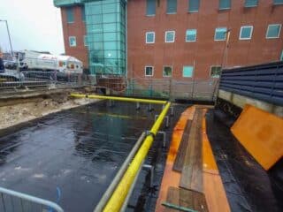 The installation process began with the careful excavation of the existing earth by the principal contractor, i4 Projects, to expose the original concrete screed and roof deck. Once the substrate was exposed, a new layer of self-levelling compound was applied across the roof, creating a smooth and robust surface critical for the performance of the new waterproofing system.