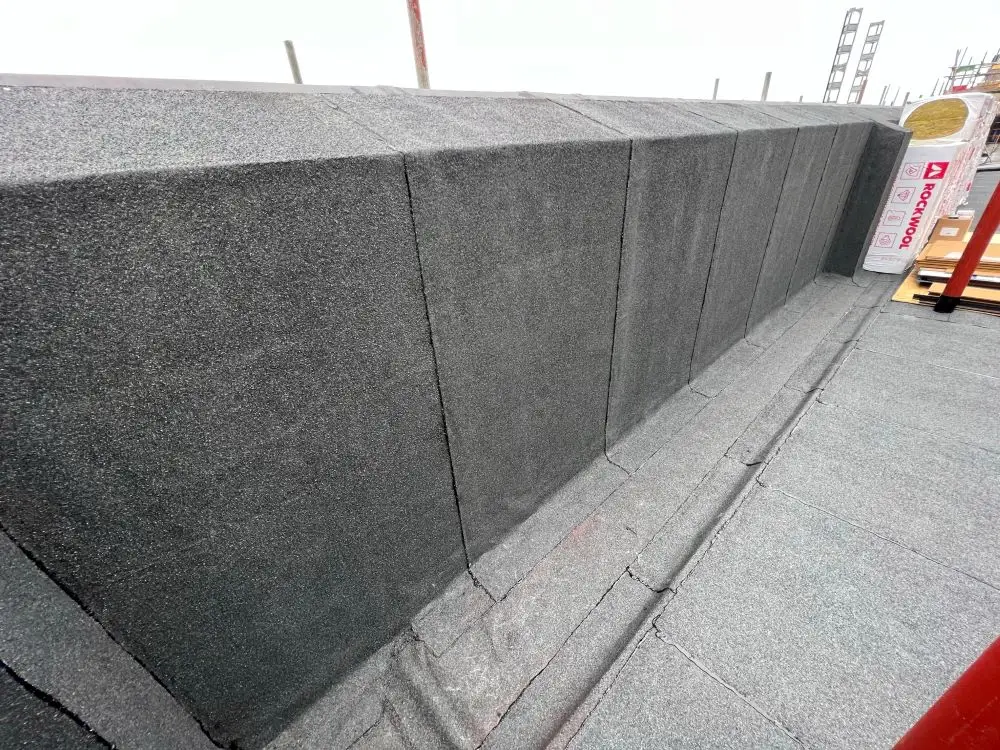 The flat roof design included a built-up waterproofing system with tapered insulation, utilising the high-performance StressPly Flex bituminous membrane system.