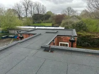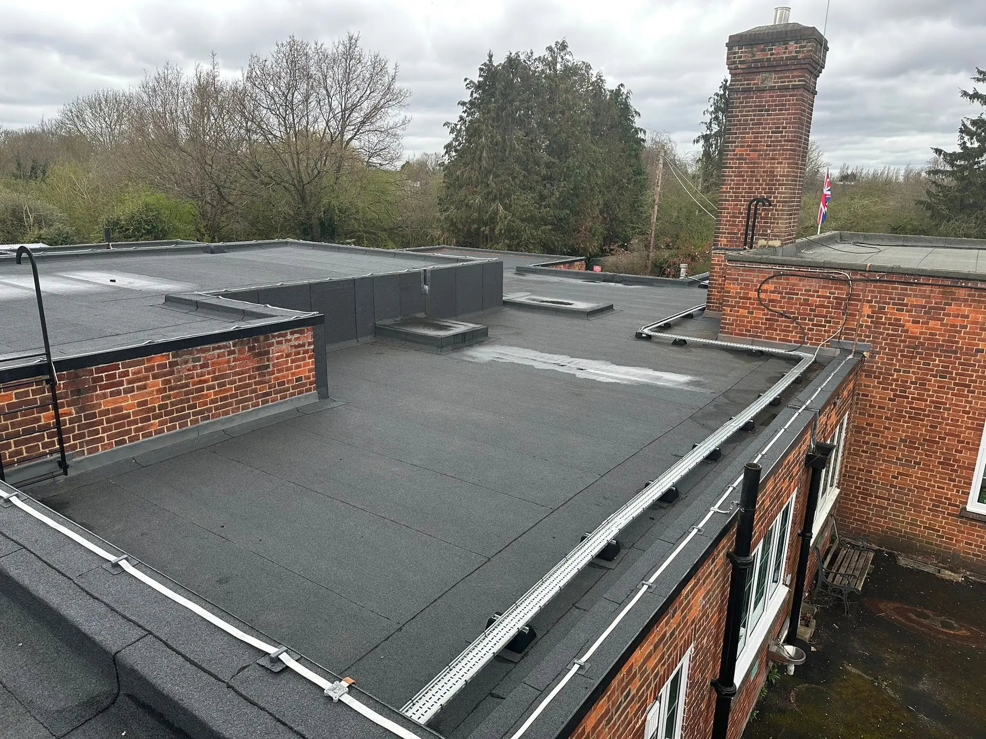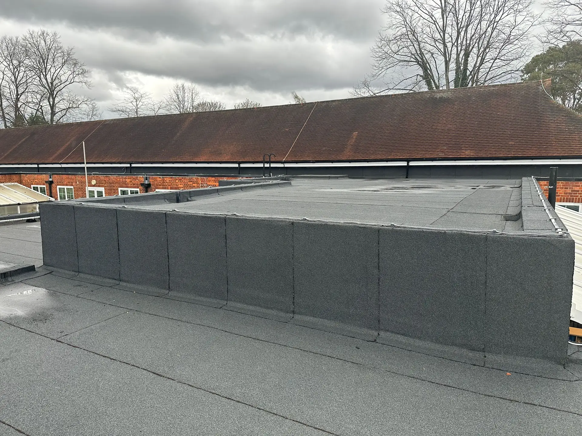 The StressPly Flex built-up membrane system (BBA-certified) was specified to overlay the 930 sqm roof to deliver a thermally efficient, fully waterproof warm roof refurbishment. StressPly Flex is a high-strength torch-on bituminous waterproofing system designed with superior tensile and tear strength for optimum waterproofing performance.