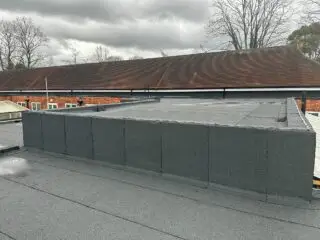 The existing built-up bituminous membrane system had come to the end of its natural life and was in extremely poor condition, including areas of poor drainage, organic growth, and ponding water. The protective mineral slate on the membrane had washed away over the years, leaving the cap sheet brittle from unprotected sun exposure and less responsive to movement in the building.