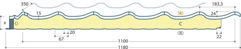 The R-MER COMP trapezoidal insulated roof panel can be used for pitched roofs, horizontal and vertical wall application and an external insulated cladding panel for industrial commercial and public buildings. Due to its metal inner and outer sheet, it combines thermal resistance with large spans. The minimum pitch to be applied is 4° or more after deflection.